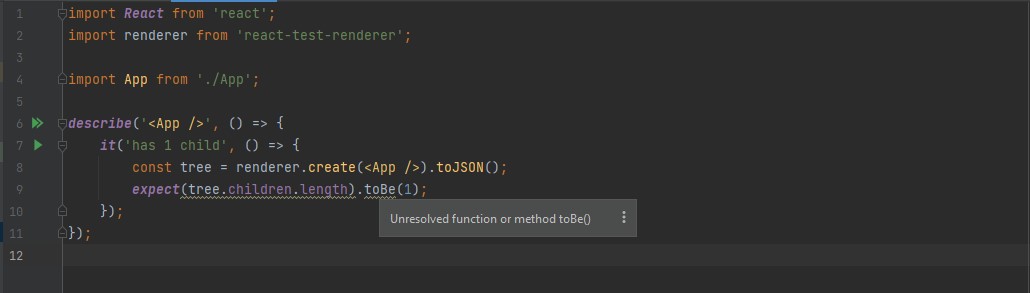 但问题是,WebStorm IDE不承认Jest及其功能。