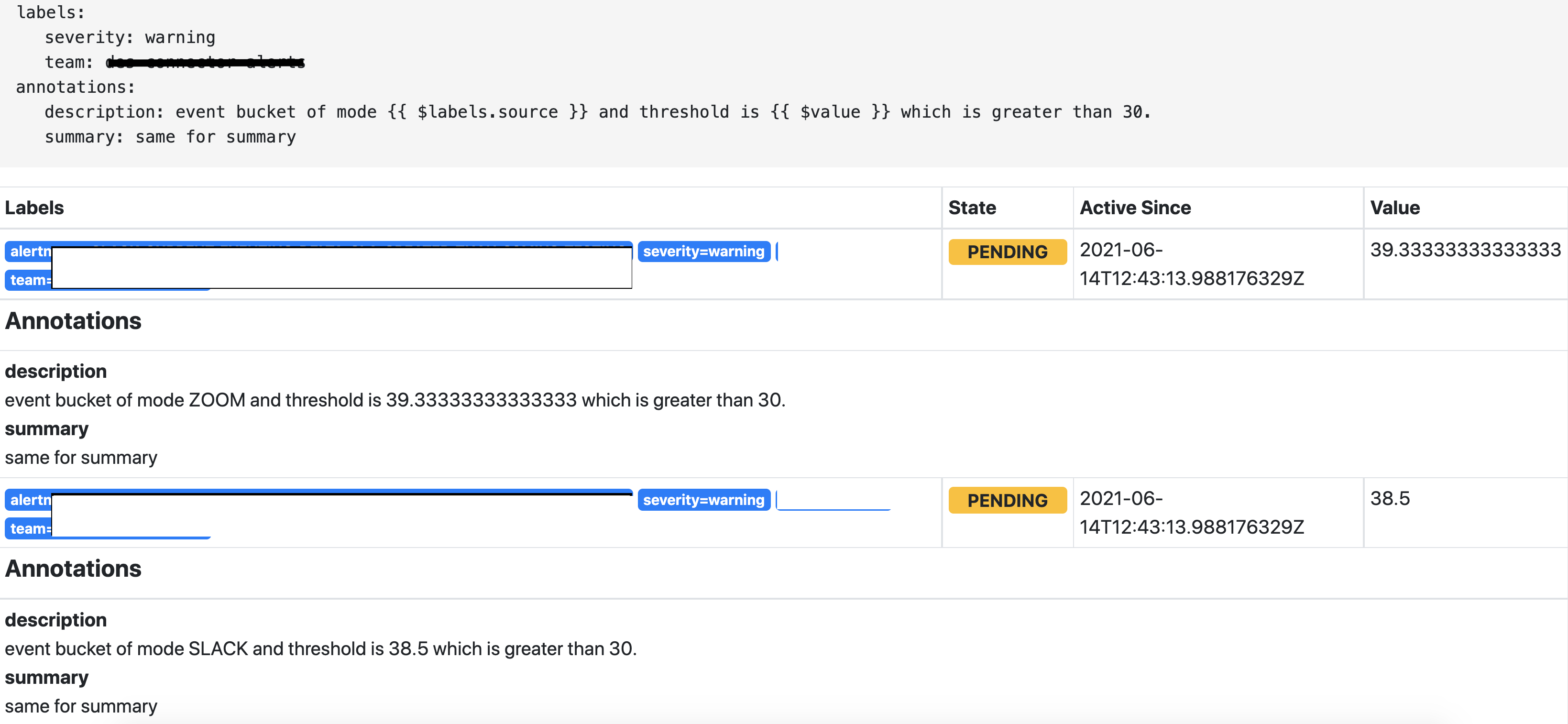 description: event bucket of mode {{ $labels.mode }} is {{ $value | printf "%.2f" }} and is greater than 30.发布于 2021-06-14 12:51:27