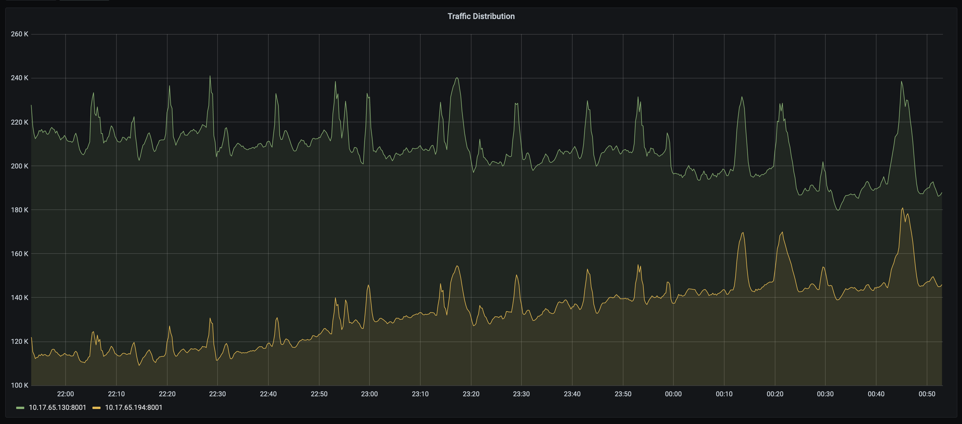 在调试其他问题时,我发现HAProxy吊舱上的流量分布不均。例如,一个Pod接收540 k请求/秒,另一个Pod接收80k请求/秒。
