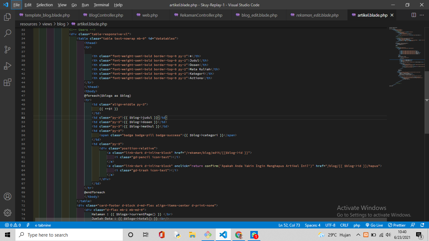 Route::get('/blog/{$id}/hapus','App\Http\Controllers\BlogController@destroy');然后这是我的BlogController代码