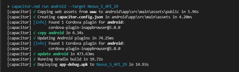 我是一个新的离子,我想运行我的应用程序在一个android仿真器热重加载和访问控制台。我使用以下命令(我使用电容):ionic capacitor run android,但是一旦应用程序被部署,终端就会终止,并且我无法访问控制台