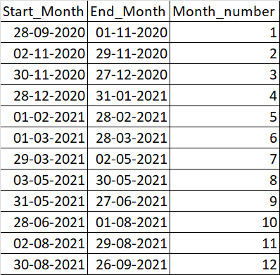 Start_Month, End_Month , Month_number