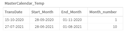 下一步是将MasterCalendar_Temp数据加载到单独的表中,但将Start_Month和TransDate连接到一个表中: