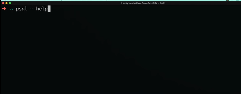 在视频中,老师引导我下载了PostgreSQL 13,我知道有pgAdmin 4和Shell。我一直跟在老师后面,直到33:42。在此之前,我能够在shell中继续并创建一个数据库。然后,视频剪辑,我注意到他似乎不是在相同的psql壳,现在是在一个壳与zsh在顶部。