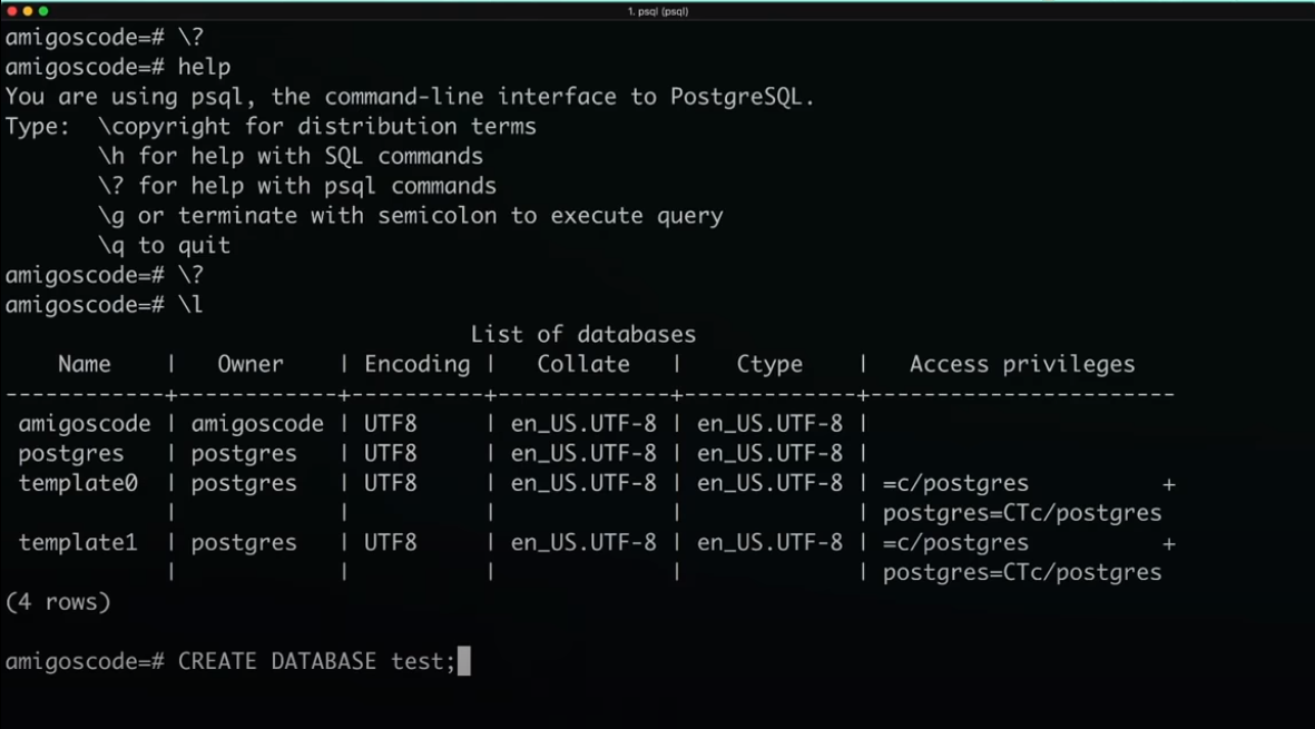 我正在跟踪一个长时间的视频教程 on PostgreSQL