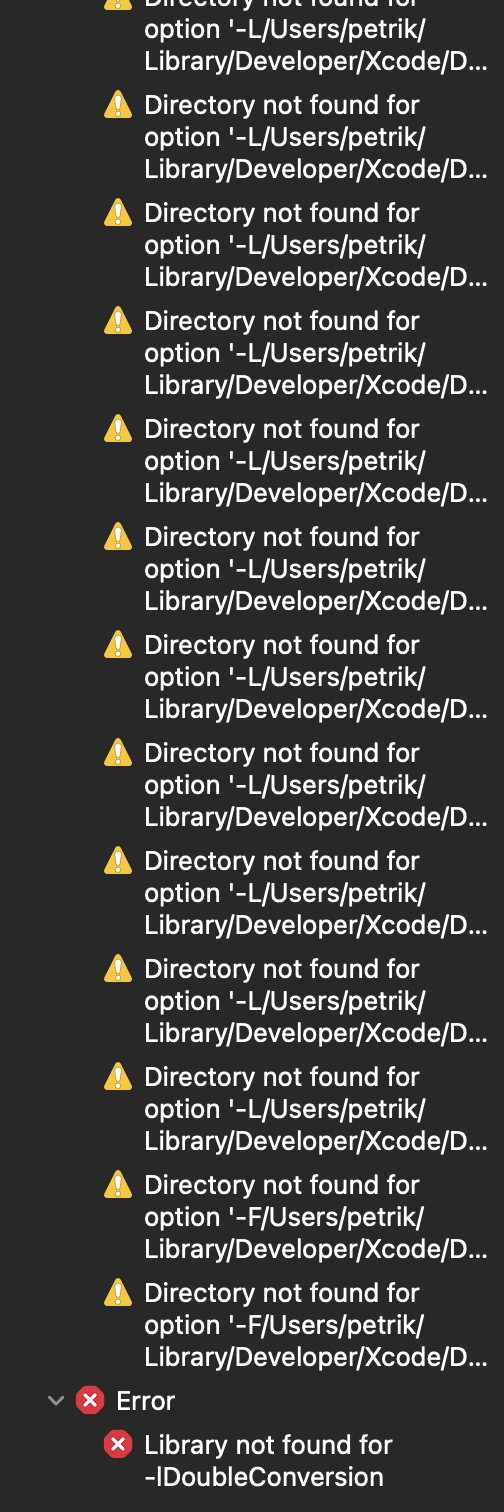 问题出在Xcode版本中。我用的是第13版的测试版。在我重新安装了Xcode并下载了稳定的12.5版本之后,它就可以工作了。