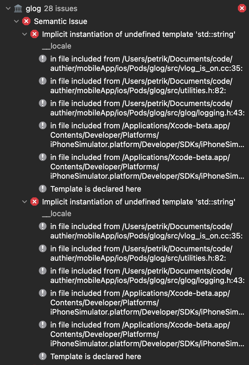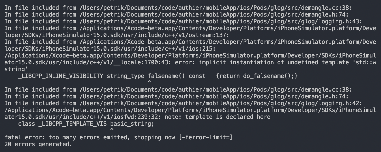 我正在MacBook Air m1上制作React本地的m1应用程序。当我在vscode中运行npx react-native run-ios时,我得到了很多错误: