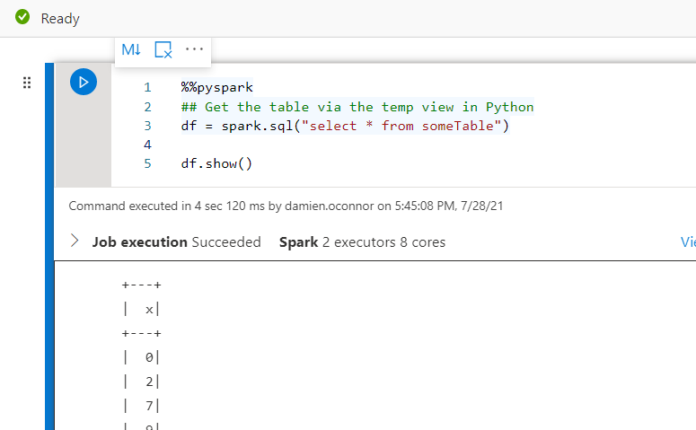 SELECT * FROM someTable;下面是Python来检索Python中的temp视图: