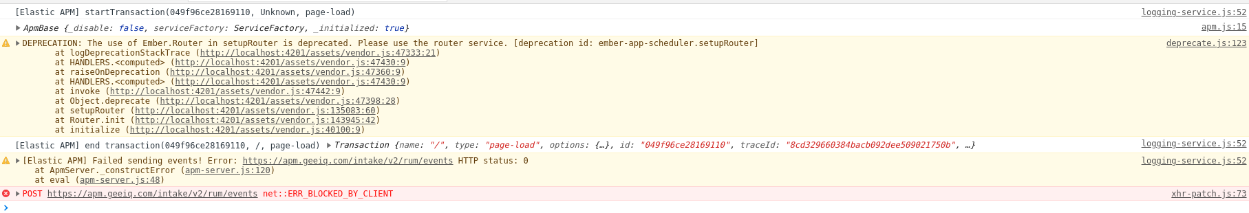 at eval (apm-server.js:48)POST https://apm.<acme>.com/intake/v2/rum/events net::ERR_BLOCKED_BY_CLIENT