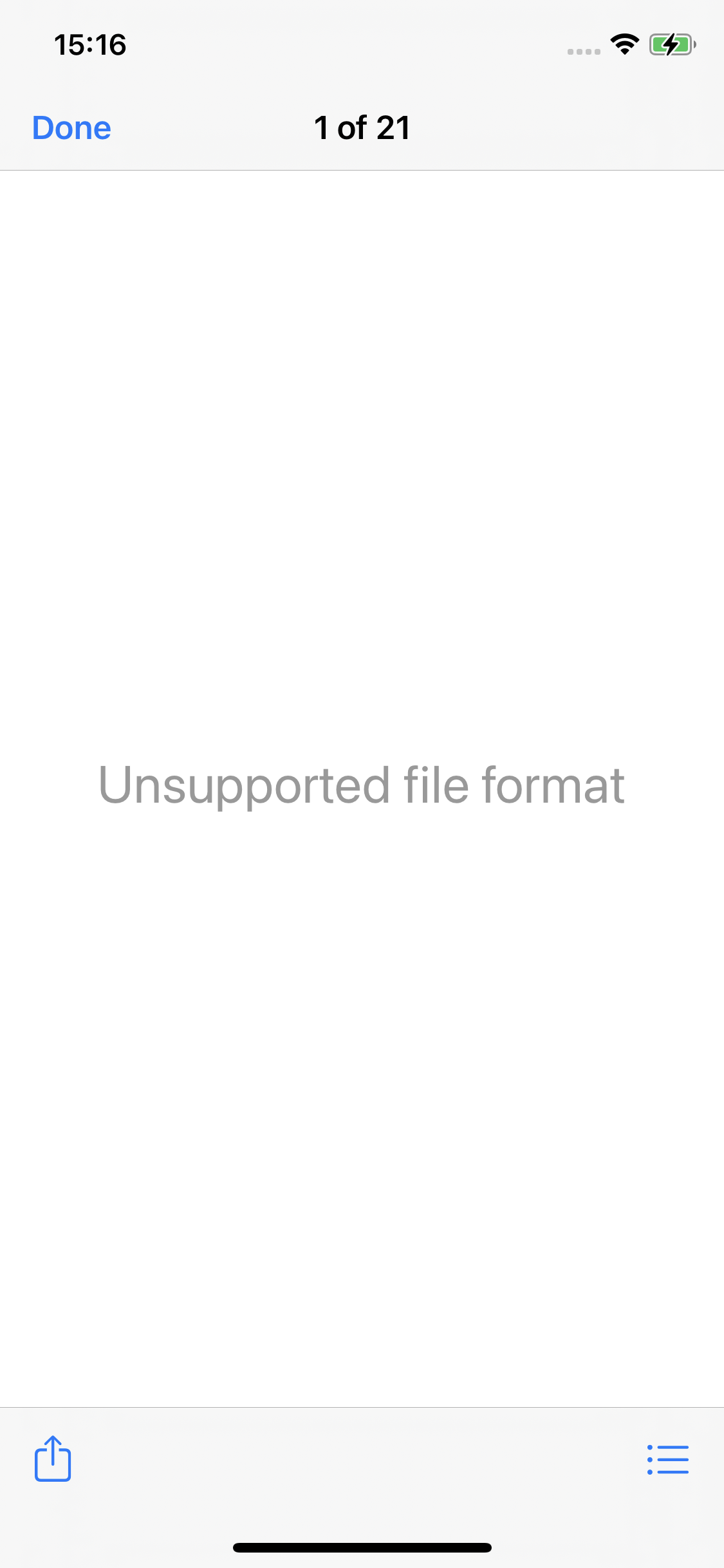第一次尝试预览任何文件时,它会打开带有message Unsupported file format的预览控制器,而其他任何时候它只显示文件名和word data(见图像)。