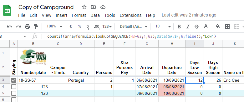 我在工作表上加了一个链接。在数据表中,我制作了一个日历,上面标明了低季节和高季节。也许这个参考可以用来计算。也许是Vlookup和Countif?