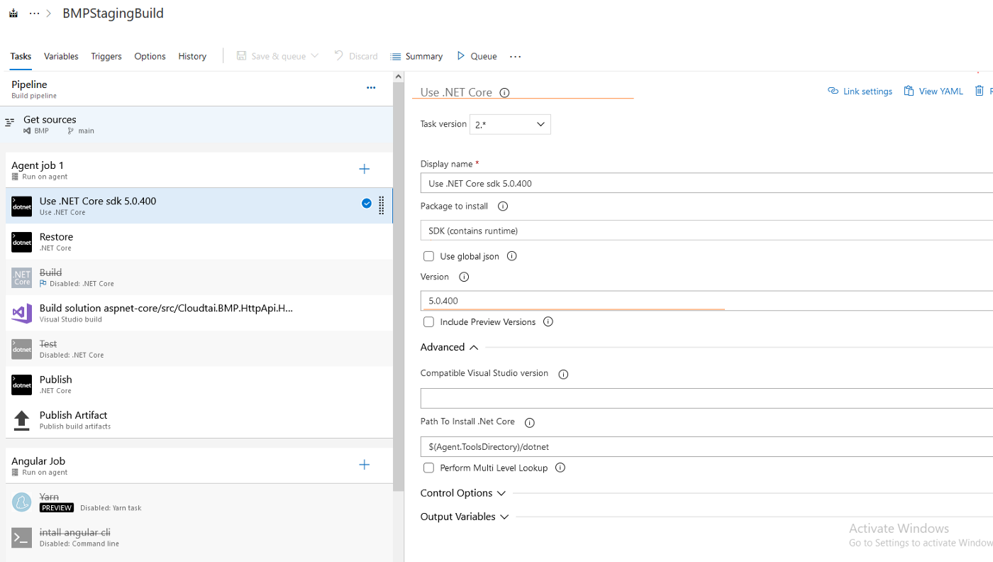经过长时间的研究,找到了解决方案,添加任务,使用.NET核心任务到管道,并选择正在抛出错误的版本,例如下面的屏幕截图