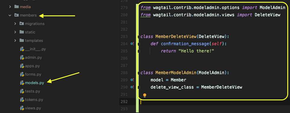 delete_view_class = MemberDeleteView我将所有这些代码放入我的成员models.py中: