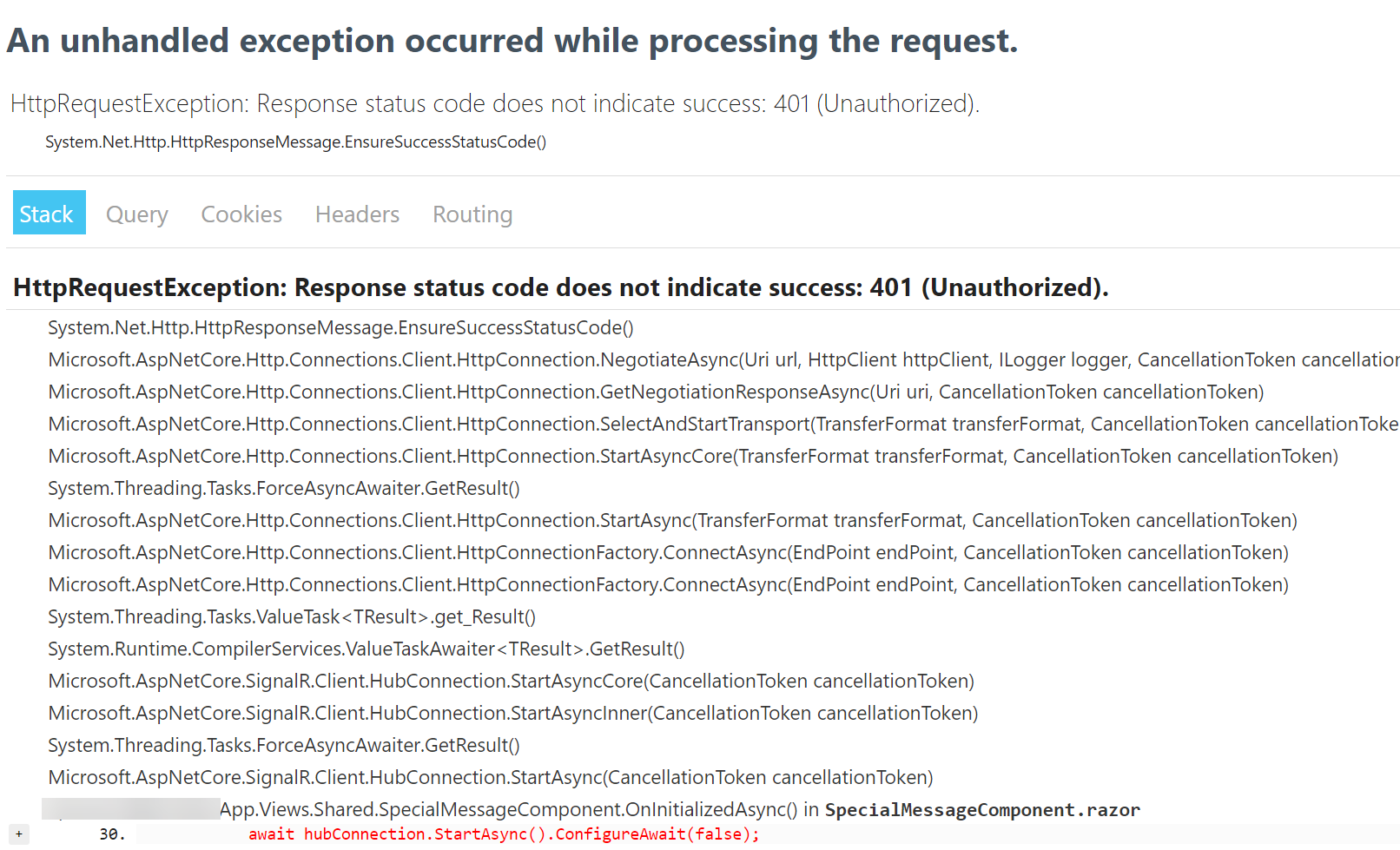 <component type="typeof(SpecialMessageComponent)" render-mode="ServerPrerendered"/>当我点击这个视图时,它返回一个401: