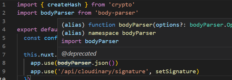一切都很好。由于body-parser通常在快递应用程序中使用,VS代码显示它与您可以使用的express.json一样不受欢迎(参见bodyParser is deprecated express 4)。既然你不想开快车,就保持原样吧