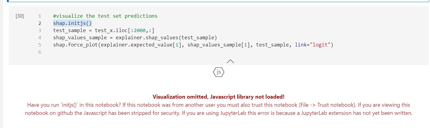 我无法在Azure笔记本中运行shap.initjs()。放弃在Azure社区论坛或其他地方查阅这个问题。