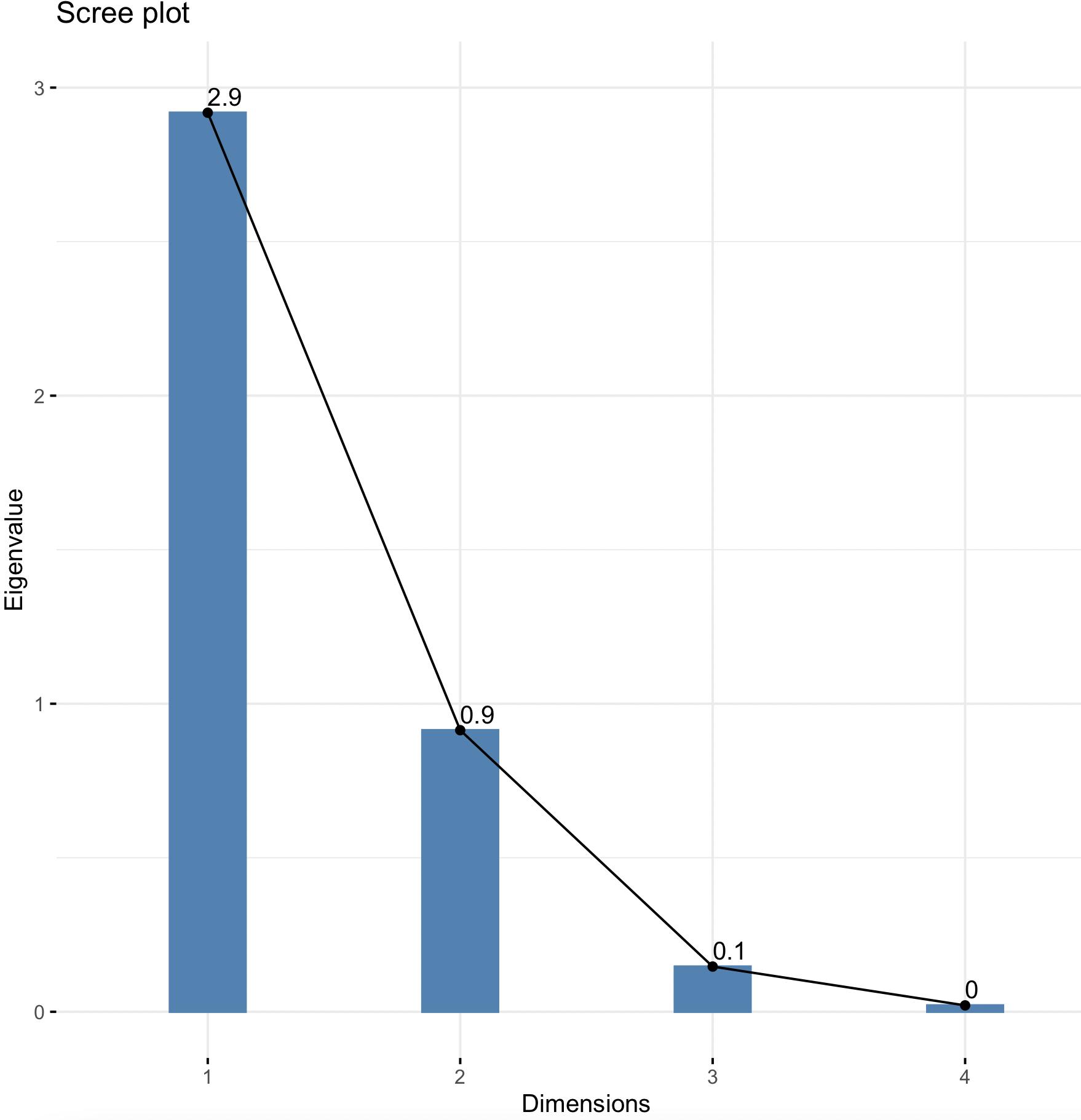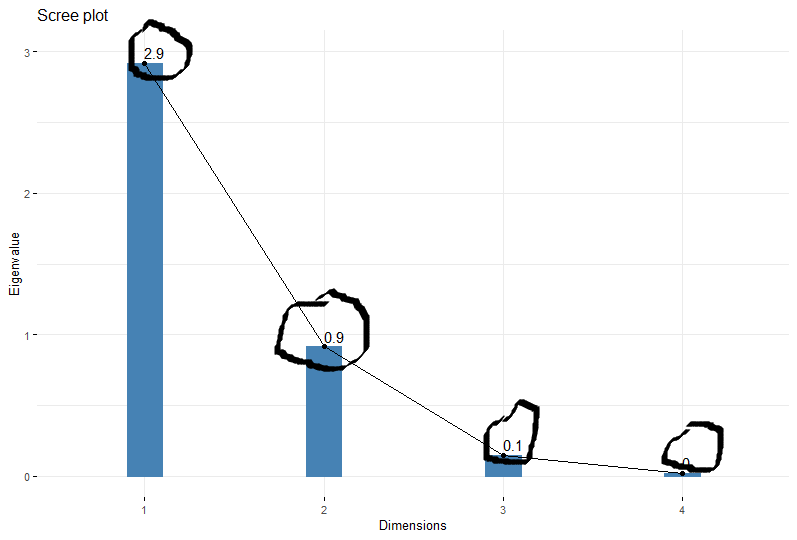 ylim=c(0,3),bar_width=0.2) + geom_text(label = round(res.pca$sdev^2,1), vjust=-0.4, hjust = 0, size = 5)