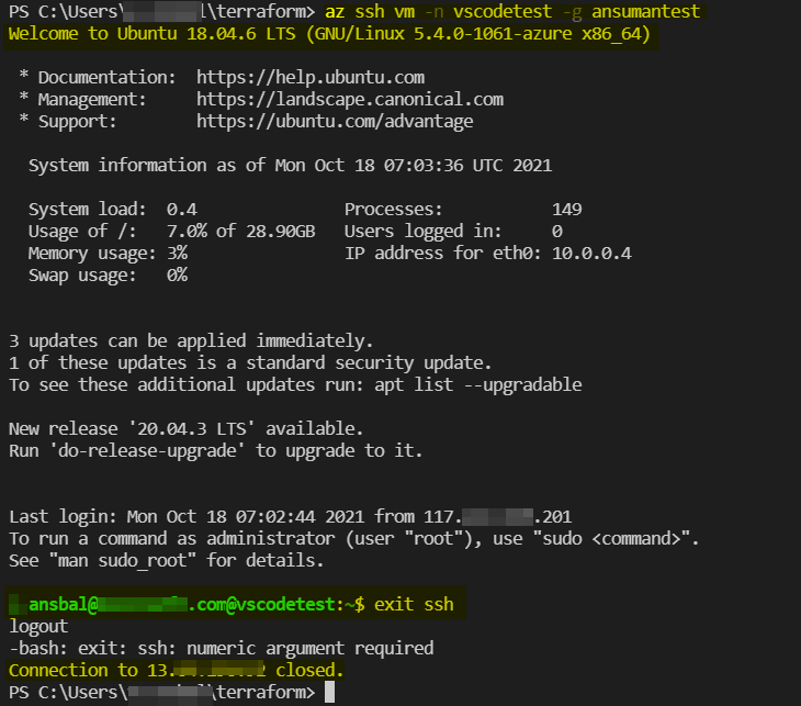 步骤,使用az-cli:从vscode执行ssh是必需的或必需的。