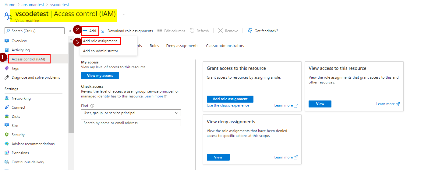 分配角色,你可以去VM in Portal >> Access Control(IAM)>>add role assignment>> select VM admin login /VM user login >> add the users and assign。