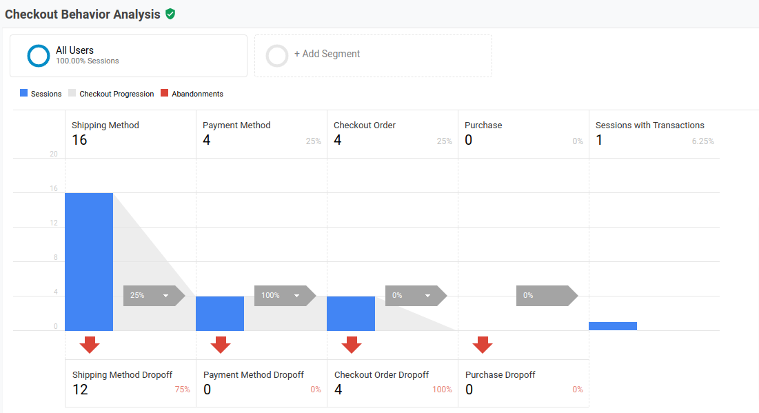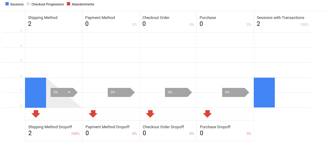 这是结帐行为菜单中的报告。运输方法被记录下来,但是为什么在步骤2(付款方法)到步骤4(购买)中没有记录?