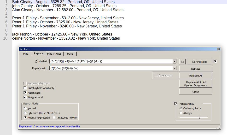 (?:(^)|\R)((.+?)\s-\s.*(?:\R\3.*)+)(?:(\R)|$)代之以: