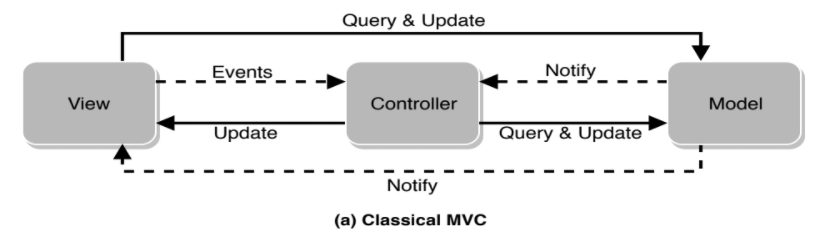 当“视图”(在用户浏览器中呈现为HTML )包含表单时,它可以将用户修改的模型发回给控制器。这算得上是操纵模型的视图吗?浏览器中不存在该模型。只有一张表格。控制器根据请求数据和可能的数据库数据重新构造模型。该模型是被动的,只是一个数据传输对象,其属性包含数据。