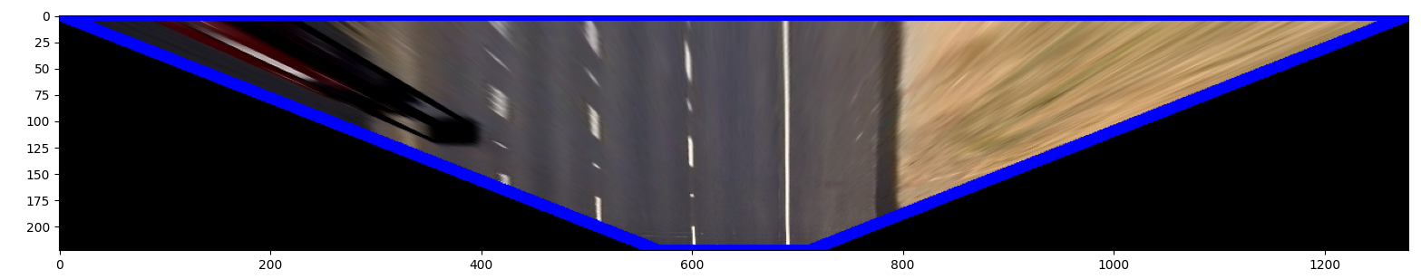 warped_img = cv2.warpPerspective(img, M, (IMAGE_W, IMAGE_H)) # Image warping
