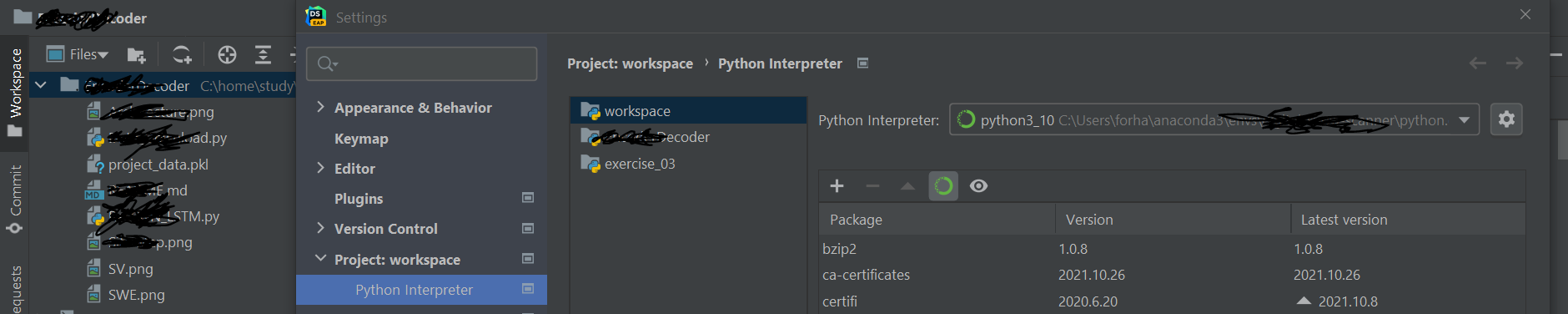 OK按钮,然后再次单击OK按钮,请单击Make available to all projects复选框。您可以如下所示更改项目的虚拟环境,