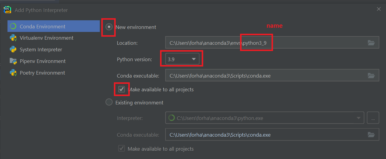 如果将目录或项目打开到DataSpell工作区,它将自动创建虚拟环境。但是,如果您想使用不同的python版本,则始终可以创建另一个虚拟环境。