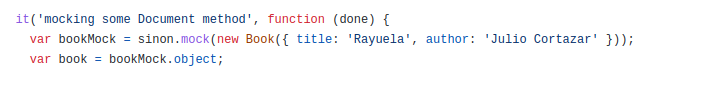 var bookMock = sinon.mock(new Book({ title: 'Rayuela', author: 'Julio Cortazar' }));
