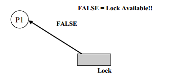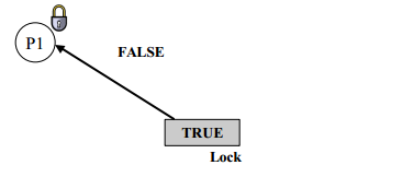 最初*目标将是假的。(这是一个给定的)。的确,P需要通过while(TestAndSetLock(&lock)) ; // do nothing获得锁并输入关键部分。(获得锁只是一件假设的事情,如果它能够通过while循环,那么它就有了锁)