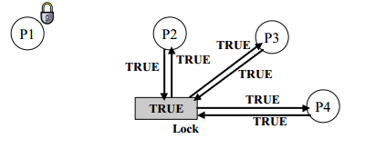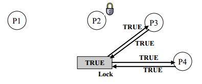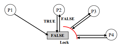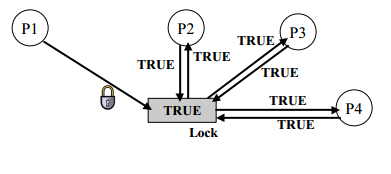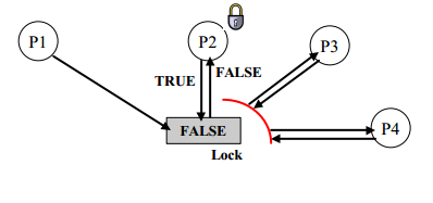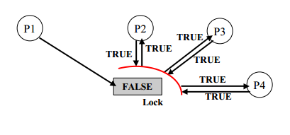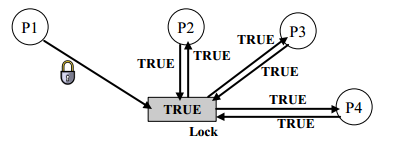 其他P会来看看目标是真,当调用TestAndSet(boolean_ref lock)时,它总是返回TRUE,直到P1将目标设置为false为止。