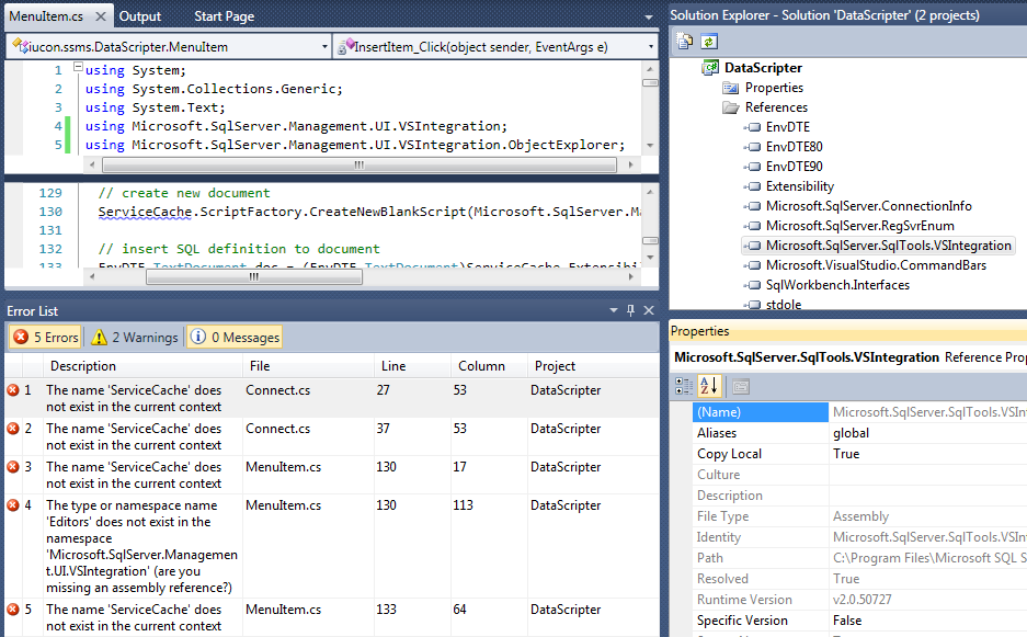 Microsoft.SqlServer.SqlTools.VSIntegration.dll参考CodePlex上的SSMS 2008 Addin -数据断续器项目源代码