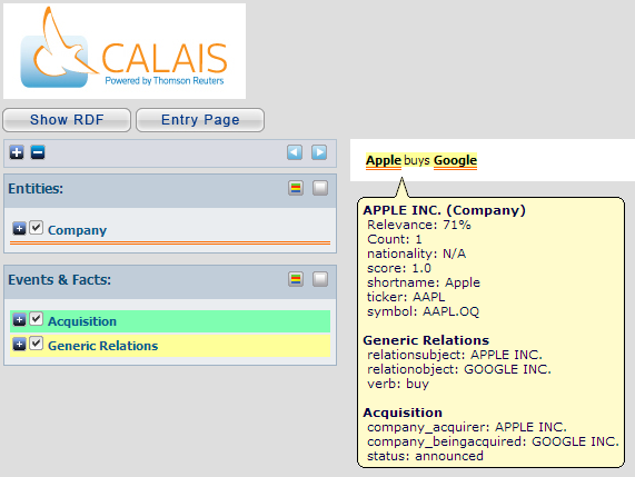 路透社( Reuters )的OpenCalais报道--在检测公司、政治实体等方面相当出色,但不像食品。