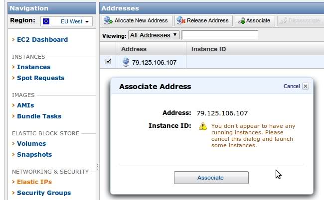 可以将此IP分配给正在运行的EC2实例。