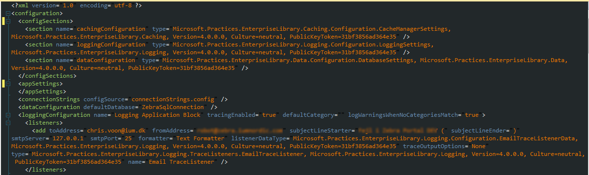 // Can obtain FromAddress, ToAddress, SmtpServer and SmtpPort