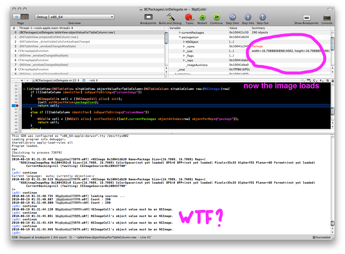 xxx = [NSImage imageNamed:@"Package.png"];xxx加载,但其宽度和高度保持为0。每当我尝试将它加载到NSImageCell中时,就会得到以下错误: