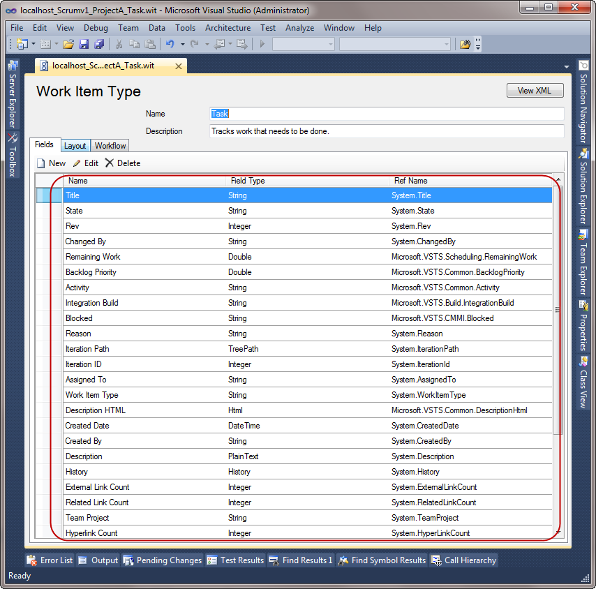 如果您安装了TFS电动工具,您将得到流程模板编辑器。如果打开要在其中查看字段的工作项,则将得到所有字段的列表。
