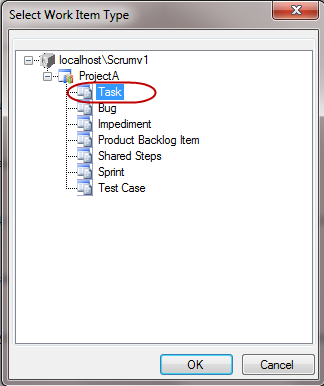 图:连接到正确的TFS服务器并选择一个项目