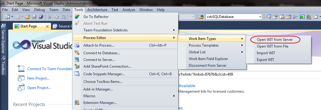 图:选择"Tools分部Process Editor \ Work x Open WIT from Server"