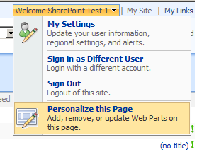 我必须从位于右上角的sharepoint站点的登录下拉列表中取出“个性化此页面”。