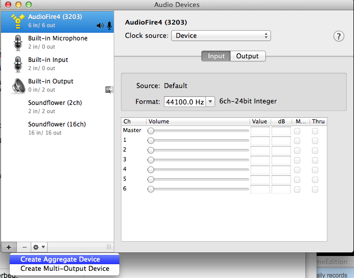 如果不能解决这个问题,另一种解决方法是创建一个聚合设备。打开应用程序>实用程序> Audio Midi安装程序,然后单击加号创建新的聚合设备。