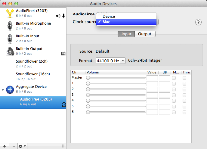 可能会给你带来麻烦的关键部分是设备上的时钟。如果您选择Mac作为时钟源,那么这可能会更稳定。