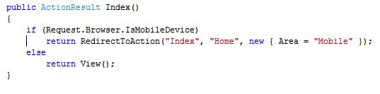 我是MVC的新手。我写的应用程序工作,我不断微调它,因为我学习。最近,我一直在玩移动网站工具。我从来不需要这样做,所以我做了尽可能多的搜索/阅读/修修补补。我从Microsoft开始,它最终有点过时了,所以我继续阅读,并最终转向使用51Degrees.mobi库。