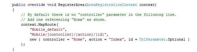 我的移动区域控制器中的命名空间是Licensing.Web.Mobile.Controllers。他们需要成为Licensing.Web.Areas.Mobile.Controllers.