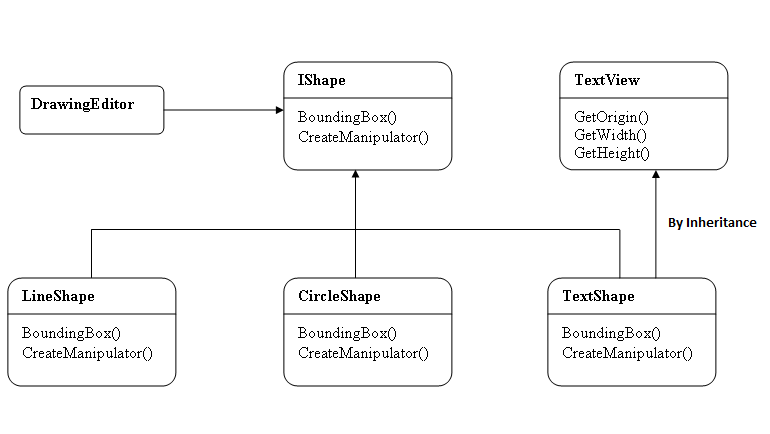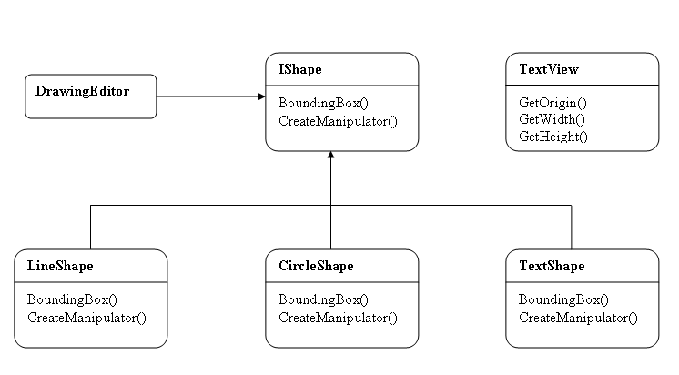 }我们希望重用TextView类来实现TextShape,但是接口是不同的,因此TextView和Shape对象不能互换使用。