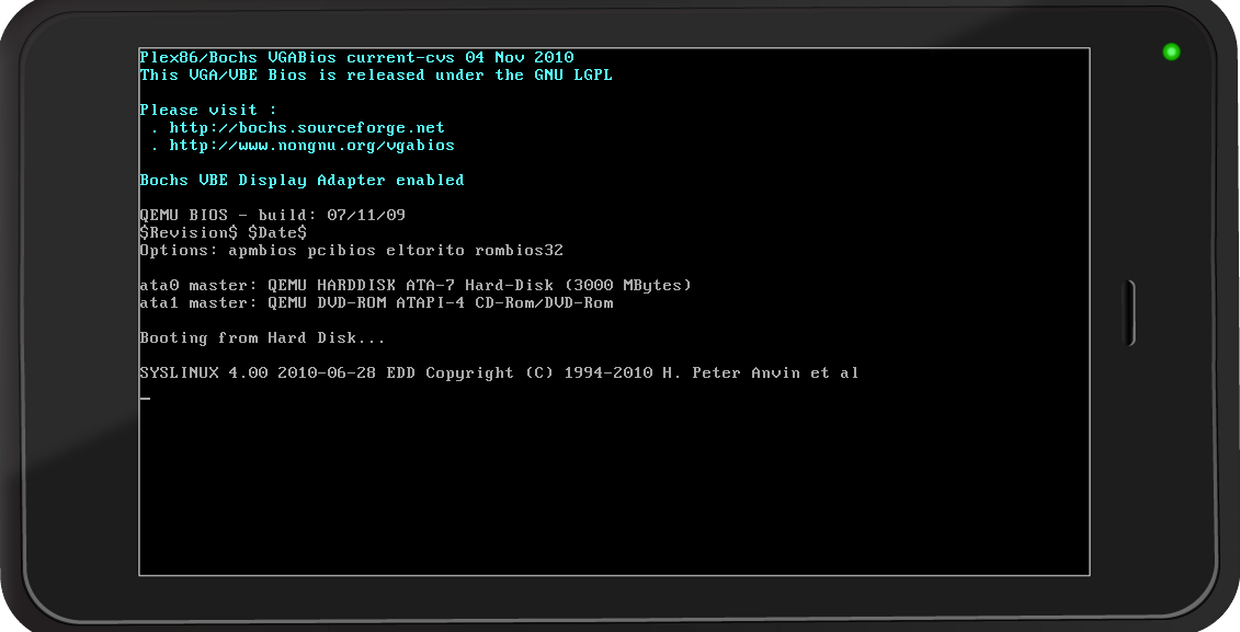 我正在尝试使用MeeGo,我已经下载了MeeGo 1.1 SDK for Windows,并按照MeeGo wiki中的每一步步骤在我的Windows7系统上安装了SDK,一切都很好。但是,当我从Qt Creator IDE or MADDE terminal启动模拟器时,仿真器屏幕就会出现,在启动欢迎消息之后什么也不会发生,如下图所示。