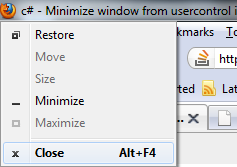 根据这个MSDN页面,如果我使用的是窗口,那么我可以通过将其设置为false来禁用左上角的控制框。像这样:this.ControlBox = false;