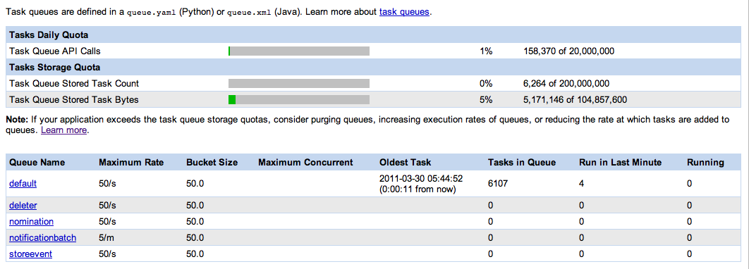 我使用任务队列向用户发送未来的提醒。每个任务都很小,但不知怎么的,这种情况已经发生了,我的应用程序也坏了: