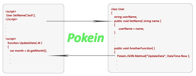 上图显示了PokeIn如何从.NET类生成动态JavaScript代码,以提供双方的交互。